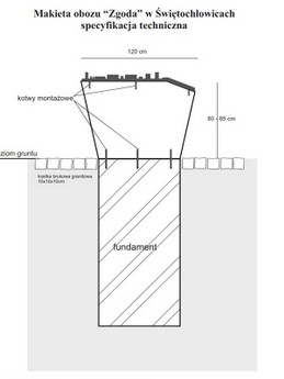Zakończyły się wstępne prace związane z wykonaniem betonowego fundamentu. Głęboki na 1 metr fundament stanowić będzie solidną podstawę pod masywny i znaczny rozmiarami model byłego obozu. Zaprojektowany odlew zostanie usadowiony na granitowo – betonowym postumencie. Wszystkie elementy scalone z podłożem będą w ostatnich dniach listopada, tuż przed uroczystością odsłonięcia.
